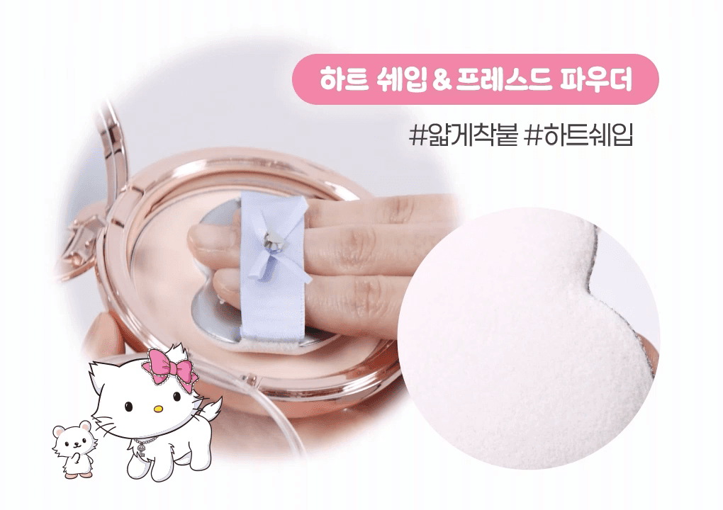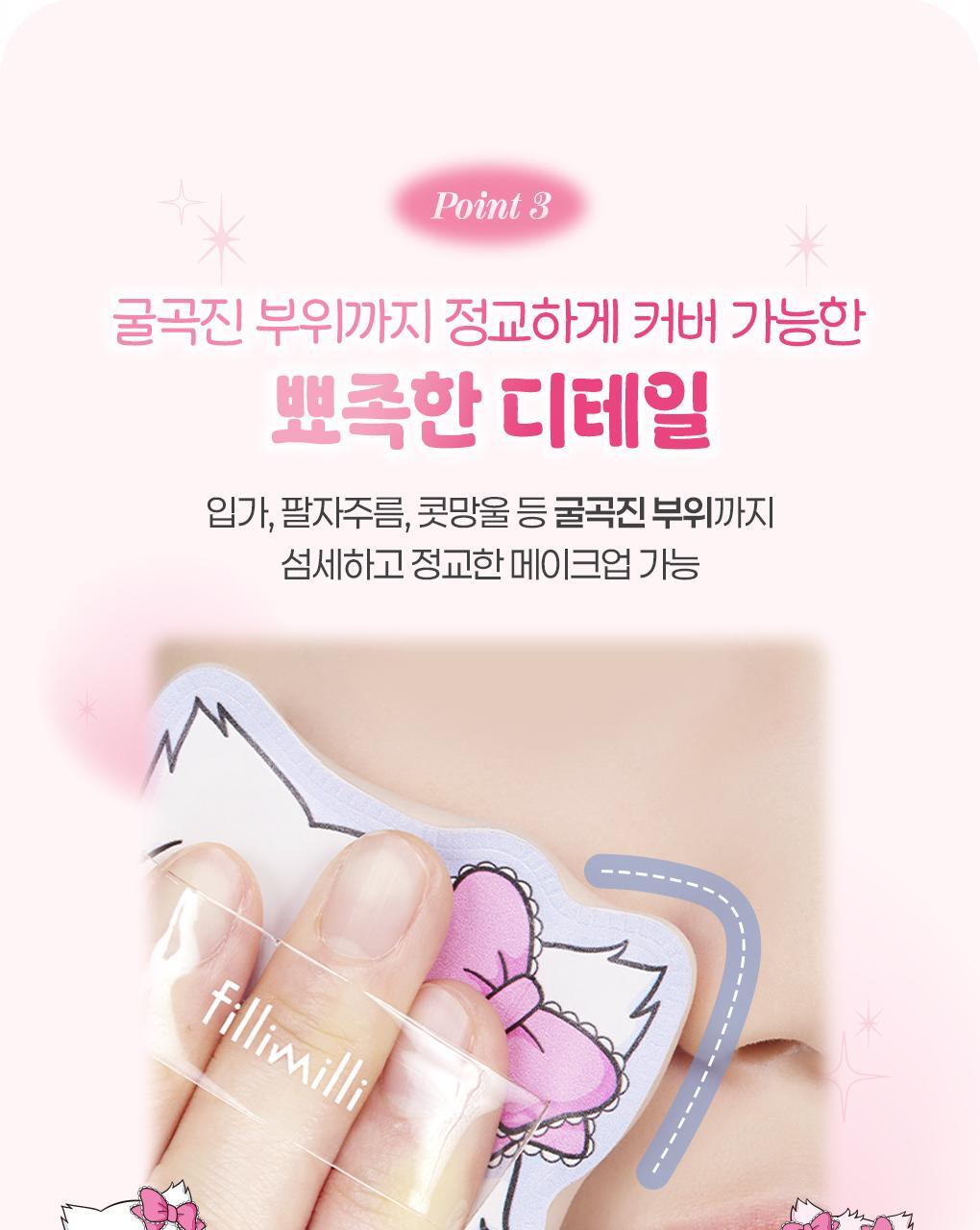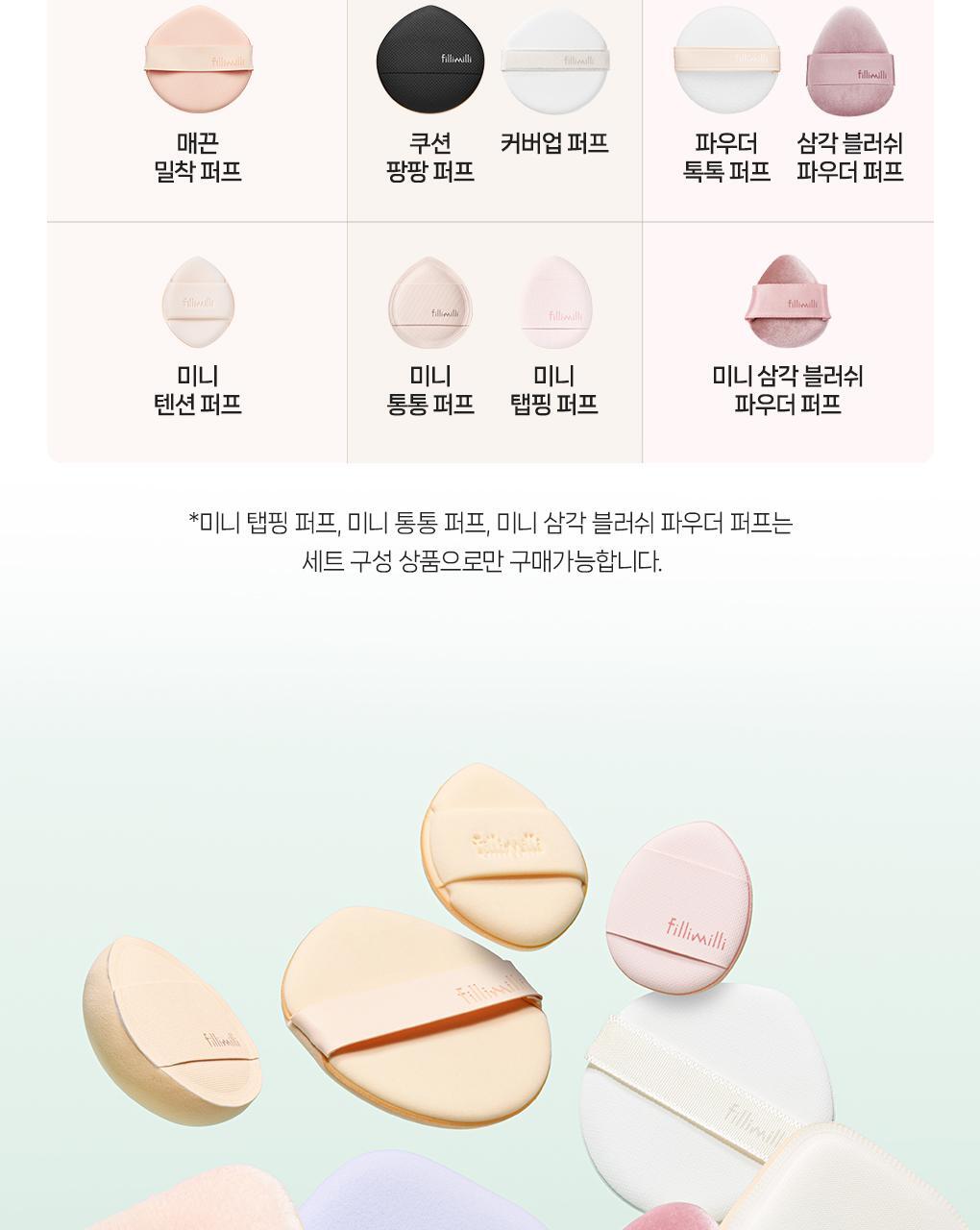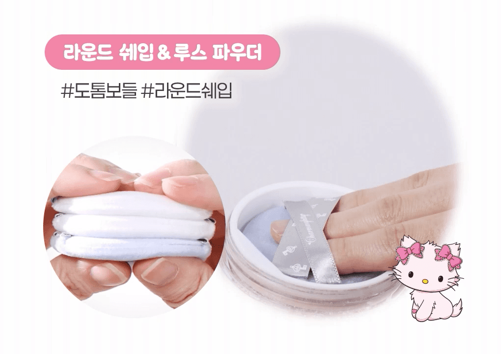 | 韓國Fillimilli × Charmmy Kitty聯名系列粉撲套裝 1. 柔焦定妝粉撲 (Blur Pang Powder Puff) 閃亮愛心粉撲 - 修飾毛孔: 專為柔焦效果設計,能細緻遮蓋毛孔並平滑肌膚紋理。乾爽妝感:適合搭配散粉或粉餅使用,幫助吸收多餘油脂,營造清爽的霧面妝感。均勻塗抹:粉撲材質能均勻抓粉,避免粉體結塊或厚重。 2. 精細 Q 彈粉撲 (Detailed Tong Tong Puff) 閃耀圓形粉撲 - 極厚設計: 具備優異的彈力與厚度,輕拍幾下即可快速完成底妝。水滴形狀:頂端尖細設計可精準照顧鼻翼、眼周等細微部位。乾濕兩用:乾用:適合高遮瑕底妝,妝感服貼牢固。濕用:噴水後使用可提升保濕度,打造透亮水光肌。 附專屬收納盒:產品包含透明收納盒,方便攜帶且保持衛生。 | |