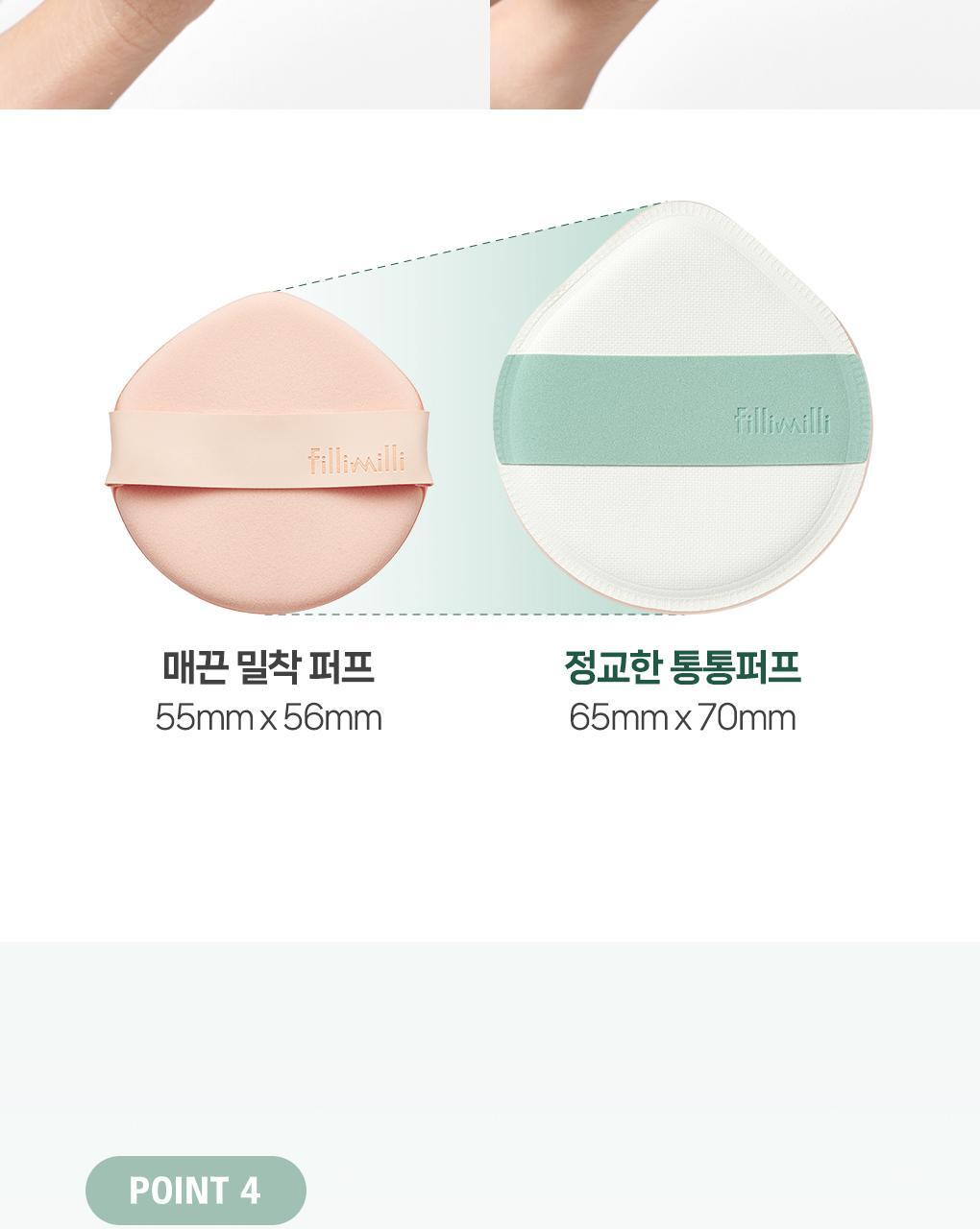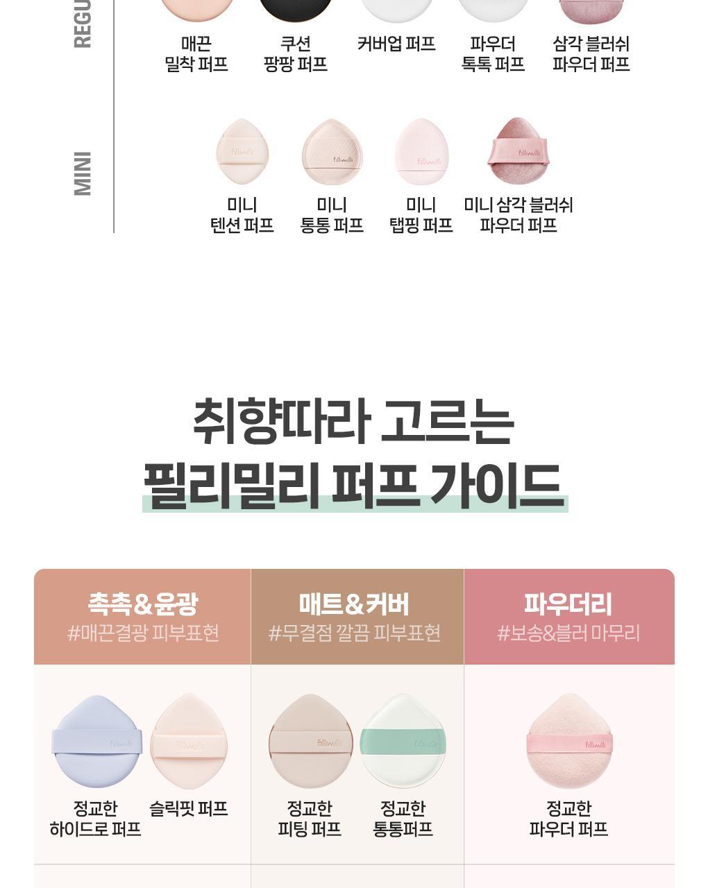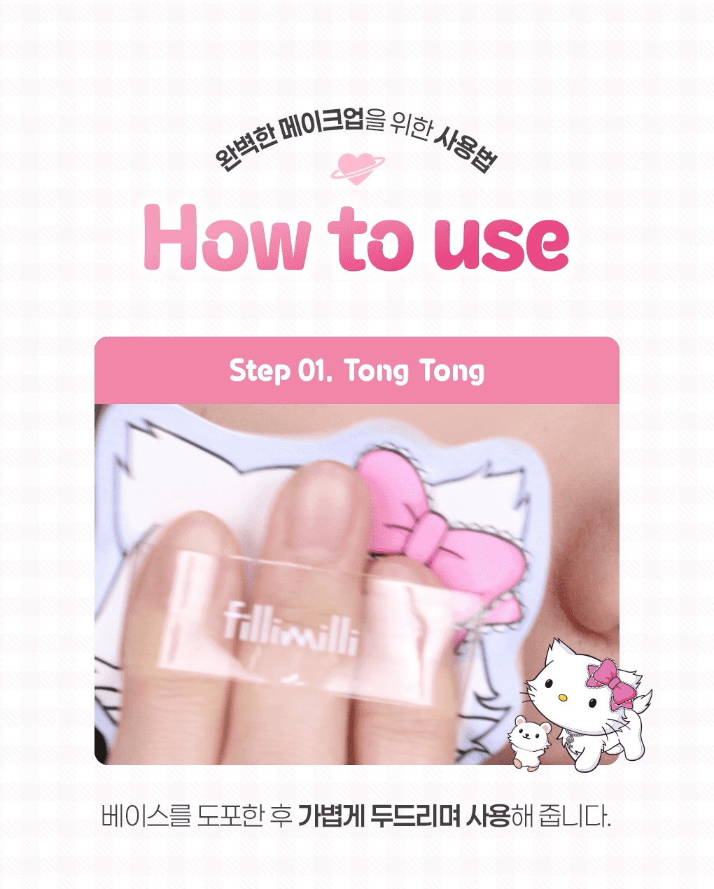 | 韓國Fillimilli × Charmmy Kitty聯名系列粉撲套裝 1. 柔焦定妝粉撲 (Blur Pang Powder Puff) 閃亮愛心粉撲 - 修飾毛孔: 專為柔焦效果設計,能細緻遮蓋毛孔並平滑肌膚紋理。乾爽妝感:適合搭配散粉或粉餅使用,幫助吸收多餘油脂,營造清爽的霧面妝感。均勻塗抹:粉撲材質能均勻抓粉,避免粉體結塊或厚重。 2. 精細 Q 彈粉撲 (Detailed Tong Tong Puff) 閃耀圓形粉撲 - 極厚設計: 具備優異的彈力與厚度,輕拍幾下即可快速完成底妝。水滴形狀:頂端尖細設計可精準照顧鼻翼、眼周等細微部位。乾濕兩用:乾用:適合高遮瑕底妝,妝感服貼牢固。濕用:噴水後使用可提升保濕度,打造透亮水光肌。 附專屬收納盒:產品包含透明收納盒,方便攜帶且保持衛生。 | |