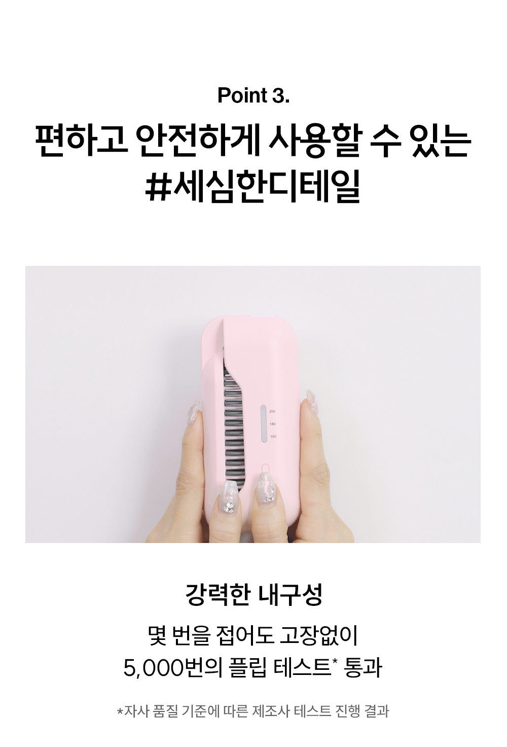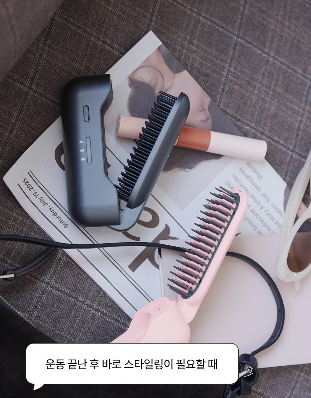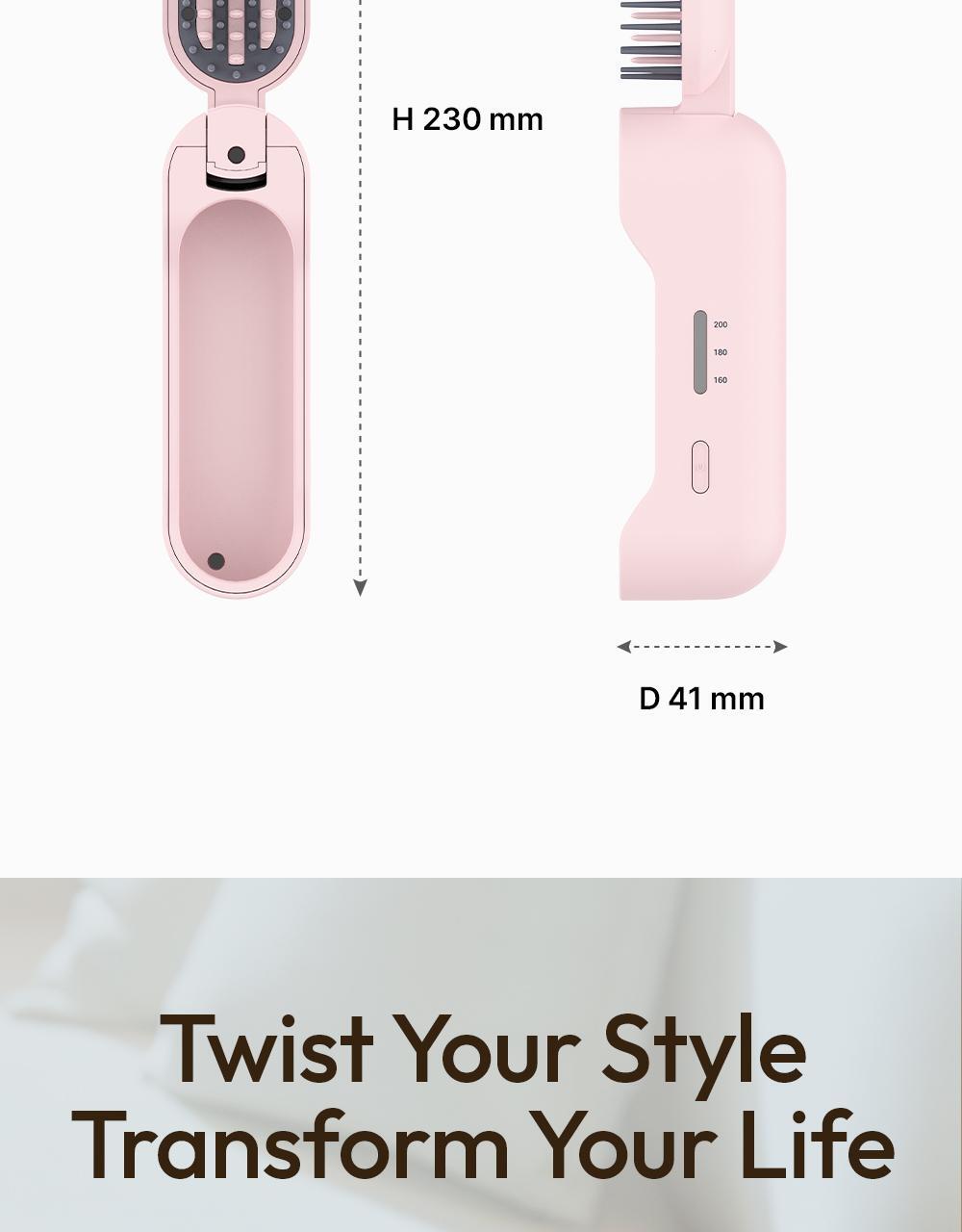 - 極致輕量與摺疊便攜設計 這款直髮梳主打超強的便攜性,機身重量僅有 192g,比市面上大多數的智能手機還要輕巧。它採用了創新的摺疊式(Flip)設計,搭配無線操作功能,讓您可以輕鬆收納進手提袋中。無論是出外旅遊、高爾夫球等戶外活動後整理儀容,還是約會前在車內快速補救髮型,都極之方便。