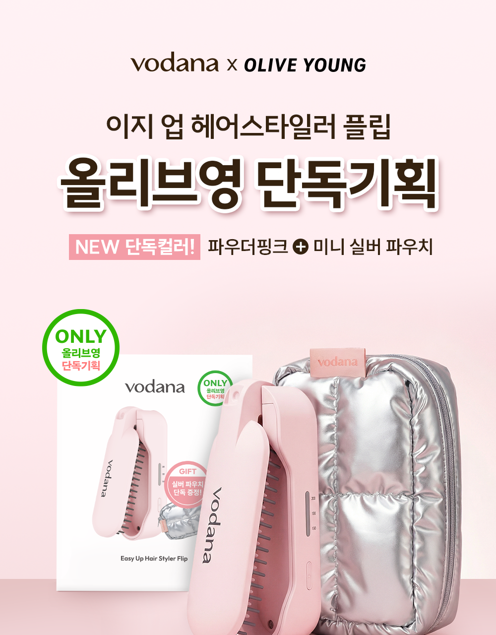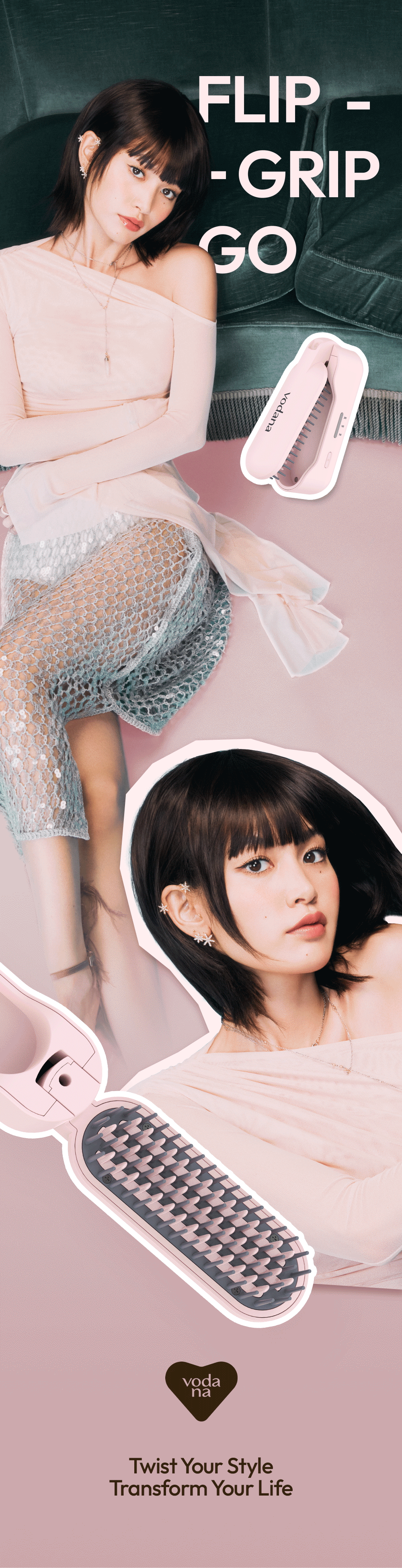 Vodana Easy Up 摺疊式無線直髮梳(粉紅色 - 附送便攜收納袋 | 數量有限, 送完即止)