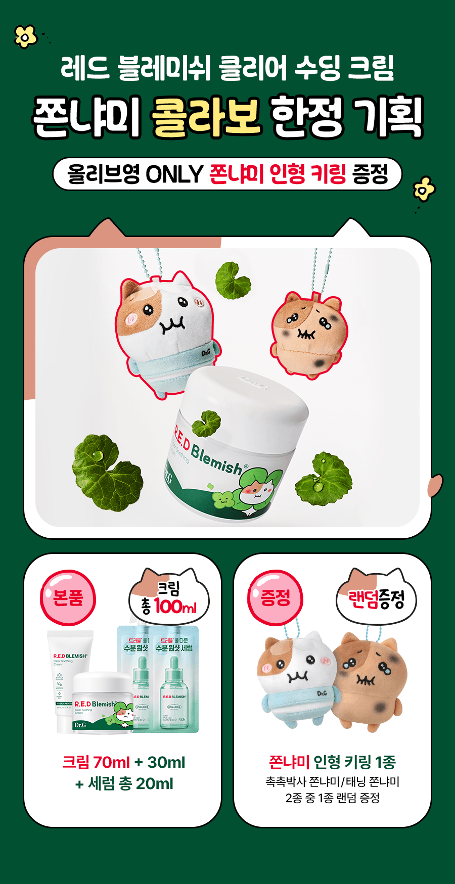 韓國 Dr.G 紅斑祛痘舒緩霜 70而ml + 30毫升便攜裝 + 精華液20ml (贈隨機人氣插畫角色「Jonnyami (쫀냐미)」聯名娃娃鑰匙扣)